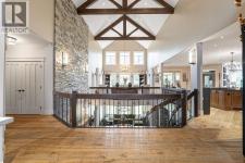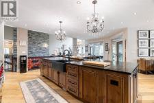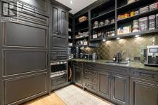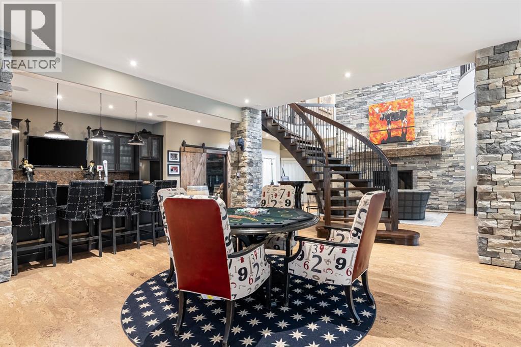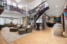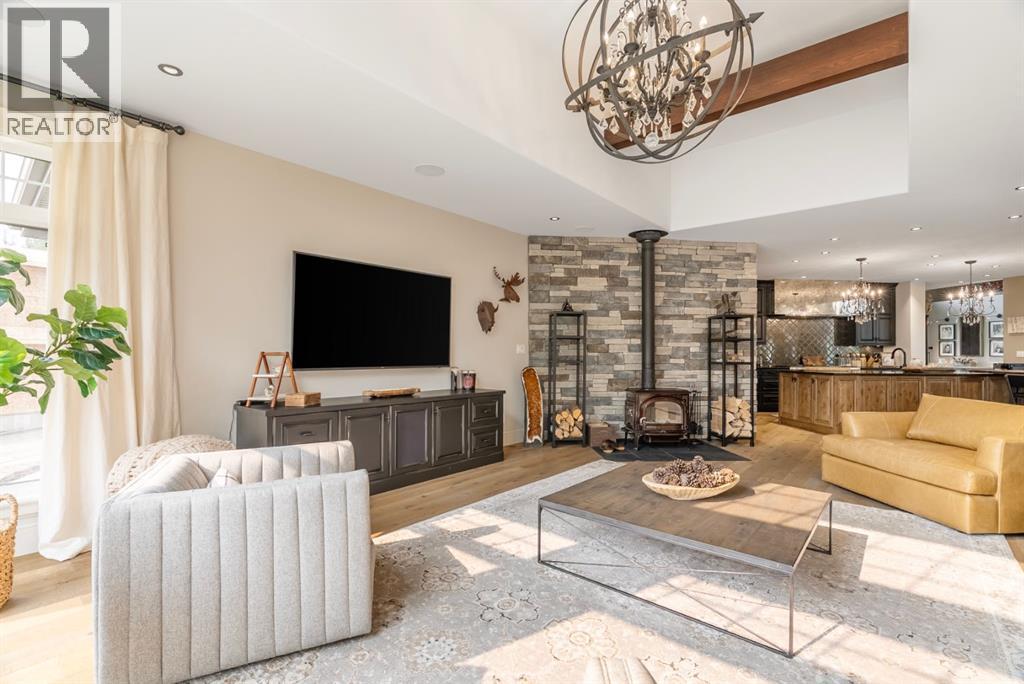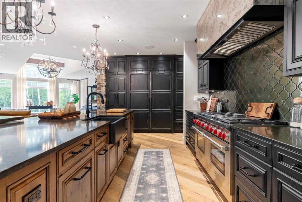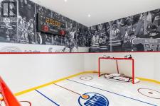 137 Wood Buffalo Way, Sophistication & Tranquility! Tucked away on an expansive 35,500 sq. ft. treelined estate, this extraordinary 9,700+ sq. ft. walkout bungalow. The tranquil backyard oasis, complete w/stone walkways, a sprawling fire pit area, & a covered rear deck with a rejuvenating hot tub, offers the perfect balance of elegance & relaxation. Entering this home you're welcomed by an awe-inspiring foyer with towering vaulted ceilings that set the stage for the exquisite interiors beyond. Luxury hand-scraped hardwood floors that run throughout the main level to the dramatic floor-to-ceiling stone fireplace in the lower level living room, which acts as the heart of the home. The gourmet kitchen is a culinary masterpiece, anchored by an oversized island, it features professional-grade appliances. The black granite countertops, farmer’s sink & the abundance of custom cabinetry add an extra layer of sophistication. Adjacent, a thoughtfully designed butler’s pantry features a built-in freezer, additional sink, and plentiful storage. From the kitchen, step out to the covered deck, where a custom outdoor BBQ kitchen awaits, complete with radiant heaters, intricate stonework, glass railings, and soft spotlights for atmospheric evening dining. The dining room, a showpiece of refined luxury, boasts vaulted ceiling and a striking antler chandelier, & a capacity to seat 10+ guests.. This luxurious space is complemented by a spa-inspired ensuite bathroom. Indulge in the soaker tub, rejuvenate under the rainfall shower, or prepare for your day at the double vanity with a designated makeup area. The primary bedroom also offers an expansive custom walk-in closet with built-in cabinetry. While the spacious bedroom above the garage, offers vaulted ceiling, built-in bar, & elegant 3-piece bathroom, provides a private guest or family suite. The west wing, two additional bedrooms share the main level, each designed with attention to comfort & detail. A well-appointed 4-piece bath room and a large storage closet offer convenience, while the spacious laundry room is as functional as it is stylish, featuring ample closet space, + built-in bench. This wing also provides access to the second heated garage, 25x40 equipped with floor drainage + 2-pc. bathroom + rear signal overhead door for easy drive-through access. This estate is an entertainer’s paradise. The recreation room offers cork flooring and anchored by large granite-topped bar, equipped with a built-in dishwasher, fridge, microwave, and kegerator. with a pool table, multiple TVs, & an integrated Control 4 home automation system. The lower level also boasts a sophisticated wine cellar, a state-of-the-art gym, & an immersive theatre room. For the sports enthusiast, the Oilers-themed family room, designed in the team’s iconic colors & complete with a custom rink, offers a playful yet refined retreat. With its unparalleled attention to detail, this estate offers a lifestyle of both lavish entertaining & peaceful solitude. (id:6769)
