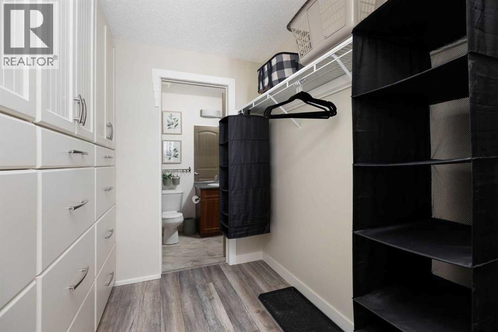 Step inside this Eagle Ridge gem and you’ll instantly feel like you’ve been dropped into the pages of a home design magazine. From the perfectly styled living room to the custom closet system that Marie Kondo would approve of; everything you see stays. Yes, that means it’s fully furnished and turn-key!!This freshly painted, one-bedroom condo has brand-new laminate and vinyl plank floors underfoot, stainless steel appliances (induction stove) in the kitchen, and a covered balcony that’s just begging for sunrise coffees or northern-lights spotting. Northeast exposure keeps things bright without ever roasting you out in the summer months.Because the building is fully concrete, you’ll appreciate just how quiet your new home is; ideal for commuters craving peace after a long shift, executives who don’t want to hear a peep between Zoom calls, or first-time buyers who love stylish serenity. Investors, you’ll love that it’s an instant turn-key rental.The primary bedroom is as cozy as it is practical, with a walk-through closet complete with custom organizers leading into the bathroom. And yes, there’s even in-suite laundry; no more hauling baskets around.Outdoor enthusiasts can rejoice, you’re steps from the Birchwood Trails, a playground in the complex, and all the amenities Eagle Ridge is famous for (Restaurants, Bar, Movie Theatre, Bowling, and More!). Plus, the condo comes with a titled parking stall and a titled storage unit; bonus points for convenience.So whether you’re dreaming of a chic starter home, a low-maintenance commuter pad, or an income-ready investment, this unit delivers. Just bring yourself - everything else is already here waiting. (id:6769)