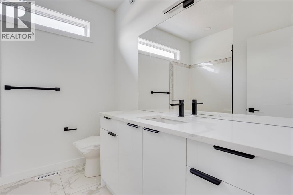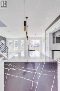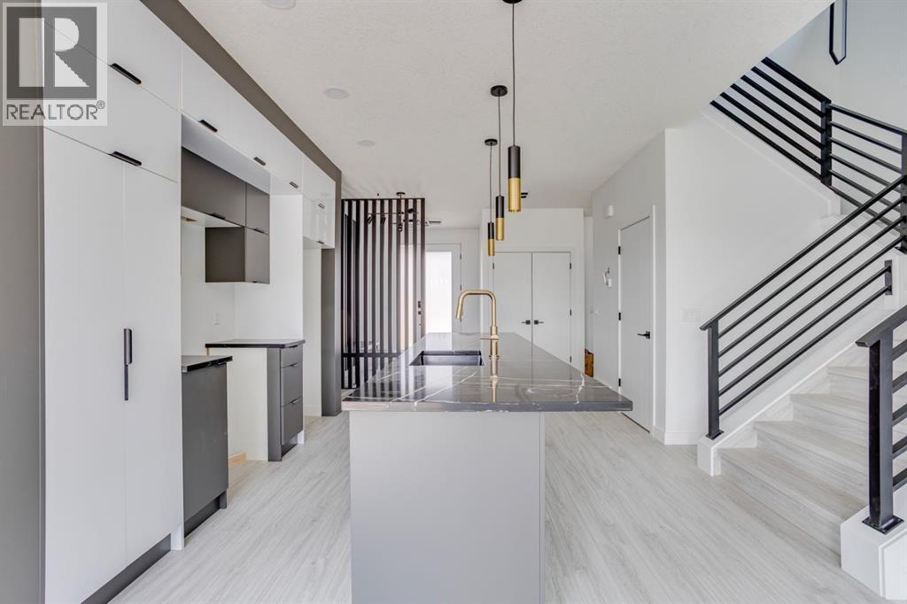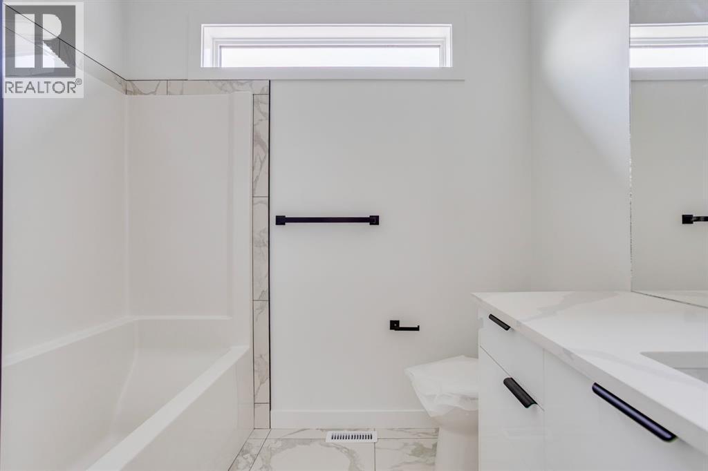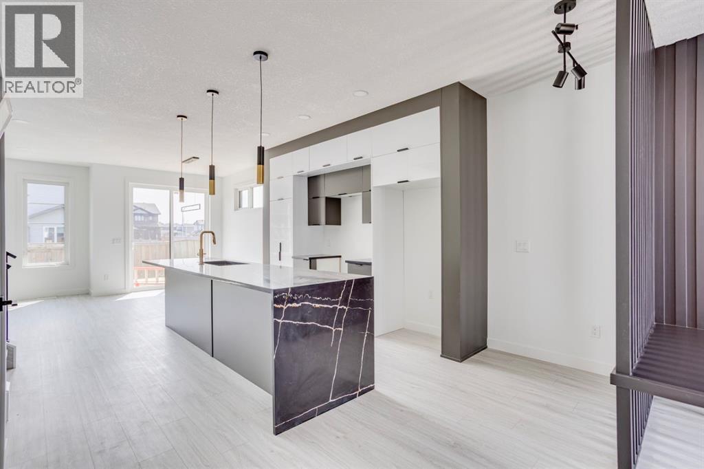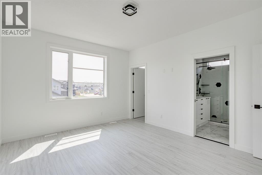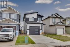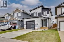 Brand New Build | Modern Elegance | Striking Curb AppealWelcome to 105 Auger Court, a stunning 1695 sq ft, two-storey home located in the scenic and sought-after neighborhood of Abasand. This brand new 3-bedroom, 2.5-bathroom residence blends modern design with sophisticated finishes—inside and out.From the moment you arrive, you'll be captivated by the home’s bold black and white exterior, sleek modern garage door, and black-trimmed windows that give it standout curb appeal.Step inside to a thoughtfully designed main level featuring a bright, open foyer with grey vinyl plank flooring and a stylish privacy wall. The front living room boasts soaring ceilings, oversized windows that flood the space with natural light, a dramatic black feature wall, and seamless vinyl plank flooring throughout—offering both comfort and style.The heart of the home is the beautifully crafted custom kitchen featuring crisp white cabinetry, a striking black center island with waterfall quartz countertops, glass tile backsplash, and soft-close cabinetry. A spacious, light-filled dining area completes this perfect gathering space. The main level also includes a chic 2-piece powder room and convenient sliding door access to the partially fenced backyard—ideal for summer BBQs or letting the kids play.Upstairs, you'll find three generous bedrooms, all with vinyl plank flooring and modern black horizontal iron railing. The primary retreat is a true sanctuary, measuring 12’5” x 14’10”, and features oversized windows, a walk-in closet with built-in shelving, and a spa-inspired ensuite with dual sinks, quartz counters, and a beautifully tiled shower complete with dual rain heads.Two additional bedrooms offer large closets and share easy access to a stylish 4-piece bath with quartz countertops and a deep soaker tub.The basement awaits your personal touch, with framing already completed and a bathroom roughed in—making it ideal for future development to suit your needs.Enjoy outdoor living on the newly built deck in the backyard, ready for family fun or relaxing evenings under the stars.Don’t miss your chance to own this incredible new build in a family-friendly community. Call today to schedule your private tour! (id:6769)