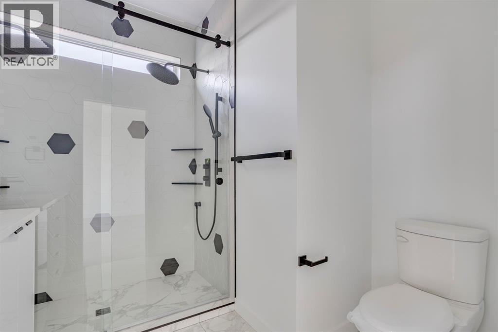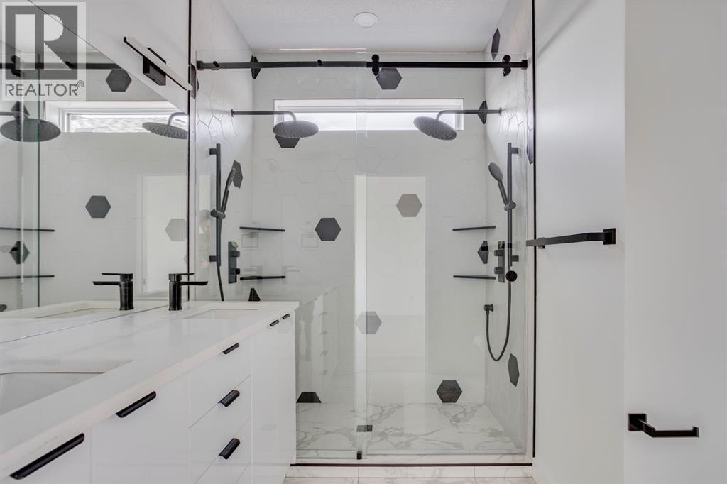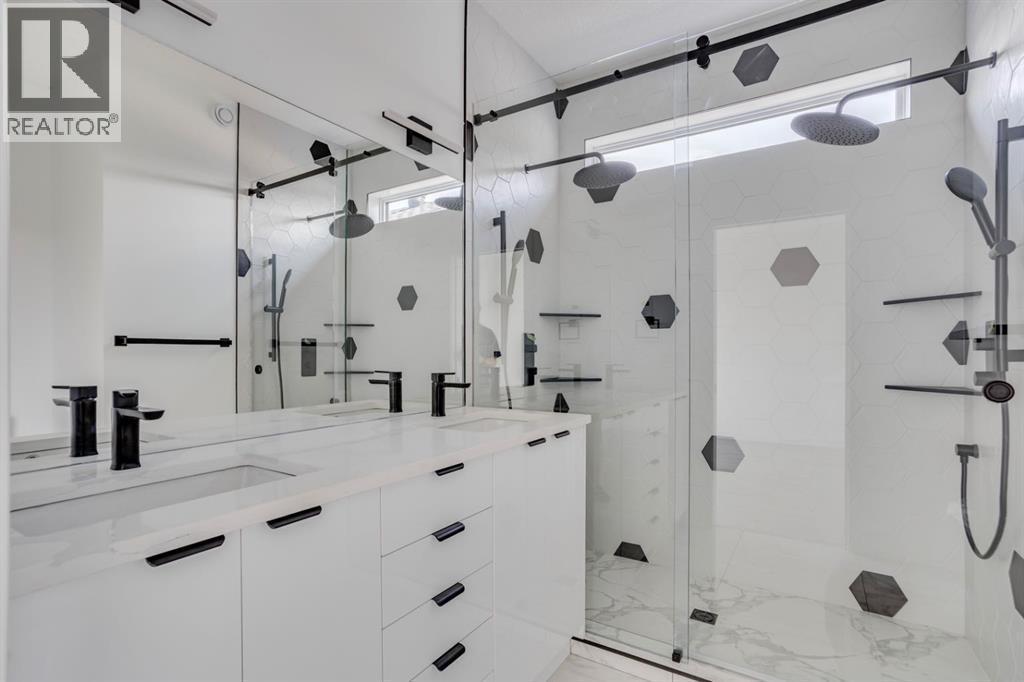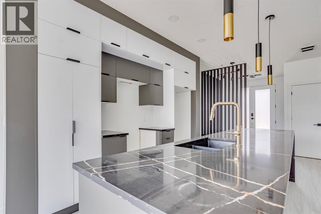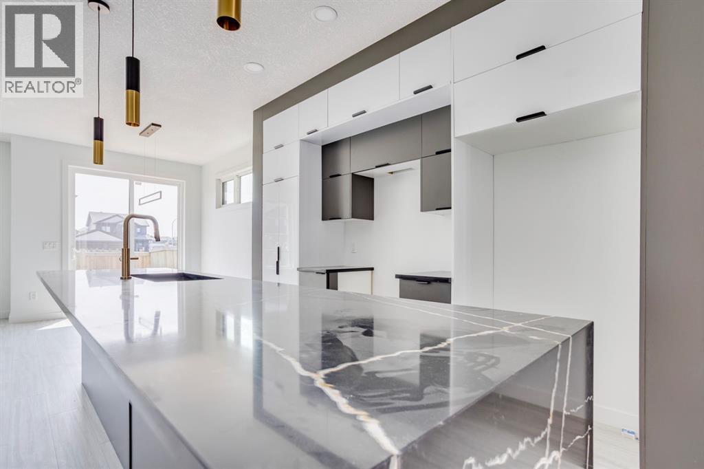 Brand New Build | Modern Elegance | Striking Curb AppealWelcome to 105 Auger Court, a stunning 1695 sq ft, two-storey home located in the scenic and sought-after neighborhood of Abasand. This brand new 3-bedroom, 2.5-bathroom residence blends modern design with sophisticated finishes—inside and out.From the moment you arrive, you'll be captivated by the home’s bold black and white exterior, sleek modern garage door, and black-trimmed windows that give it standout curb appeal.Step inside to a thoughtfully designed main level featuring a bright, open foyer with grey vinyl plank flooring and a stylish privacy wall. The front living room boasts soaring ceilings, oversized windows that flood the space with natural light, a dramatic black feature wall, and seamless vinyl plank flooring throughout—offering both comfort and style.The heart of the home is the beautifully crafted custom kitchen featuring crisp white cabinetry, a striking black center island with waterfall quartz countertops, glass tile backsplash, and soft-close cabinetry. A spacious, light-filled dining area completes this perfect gathering space. The main level also includes a chic 2-piece powder room and convenient sliding door access to the partially fenced backyard—ideal for summer BBQs or letting the kids play.Upstairs, you'll find three generous bedrooms, all with vinyl plank flooring and modern black horizontal iron railing. The primary retreat is a true sanctuary, measuring 12’5” x 14’10”, and features oversized windows, a walk-in closet with built-in shelving, and a spa-inspired ensuite with dual sinks, quartz counters, and a beautifully tiled shower complete with dual rain heads.Two additional bedrooms offer large closets and share easy access to a stylish 4-piece bath with quartz countertops and a deep soaker tub.The basement awaits your personal touch, with framing already completed and a bathroom roughed in—making it ideal for future development to suit your needs.Enjoy outdoor living on the newly built deck in the backyard, ready for family fun or relaxing evenings under the stars.Don’t miss your chance to own this incredible new build in a family-friendly community. Call today to schedule your private tour! (id:6769)