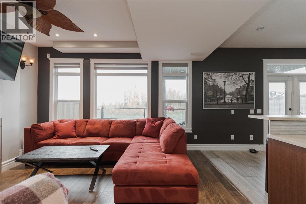 Welcome to 403 Falcon Drive: a beautifully maintained modified bi-level backing onto incredible green space and amazing tree lined views with a legal walk-out basement suite and a garage that will impress. Built in 2012 and cared for by the same owner for the past six years, this home is immaculate inside and out, with no kids or pets ever living here.The curb appeal starts with an exposed aggregate driveway and attached 24x26 double car garage with 10 ft ceilings, epoxy floors, LED lighting, hot and cold taps, and plenty of included cabinetry — a dream set up for storage, hobbies or the perfect man cave.Step inside and you’re welcomed into a bright main floor with vaulted ceilings, hardwood floors, and a gas fireplace in the living room. The kitchen is timeless with granite counters, a corner pantry, built-in desk, tile flooring, and newer appliances including a fridge (2024) and a brand new stove (2025). Up-down blinds add function, and garden doors lead you to the back dura deck, newly upgraded in 2025 with a liquid rubber coating and glass railings. Complete with a gas line for your BBQ, the deck overlooks the fully fenced yard and beautiful green space and walking trails behind, one of the most beautiful views in Fort McMurray.The main level offers two bedrooms with immaculate carpet, plus a full bathroom that sits in-between. Up a short flight of stairs, the private and very spacious primary suite awaits with a walk-in closet and ensuite.Downstairs, the walk-out basement is bright, spacious and very impressive featuring a legal suite with high ceilings, an abundance of natural light, tile and luxury vinyl plank flooring, and a Napoleon fireplace that adds warmth and style. The kitchen offers a large eat-up island, stainless steel appliances (fridge 6 years old), and plenty of storage. A full bathroom with a jetted tub and in-suite laundry complete the space, making it ideal for rental income or extended family.Additional features include central A/C, in-f loor heat in both the basement and garage, hot water on demand and an HRV system.Back outside, the yard is a mix of grass and rock landscaping with direct access to the greenbelt behind - the perfect blend of low maintenance and natural beauty.403 Falcon Drive is move-in ready and offers comfort, function, and income potential all in one. Schedule your private tour today. (id:6769)