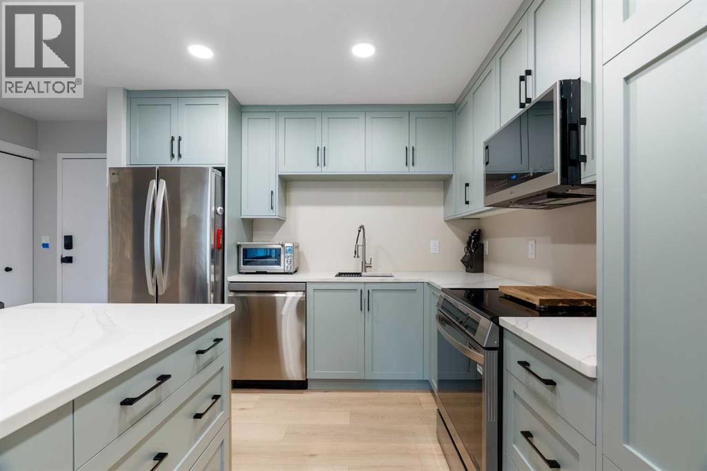 Welcome to 214-610 Signal Road! This amazing unit was FULLY RENOVATED IN 2025 with CALIFORNIA KNOCK DOWN ceiling with pot lights, ENGINEERED BIRCH flooring throughout and is ROUGHED-IN for dual AC. As you walk in, you will be impressed by the design of the ALL-NEW kitchen featuring a massive 8 FT ISLAND, stain proof FORMICA backsplash, QUARTZ countertop, PLENTY of sleek cabinets by JOS-WILL, under cabinet lighting and brand-new stainless-steel appliances with an induction stovetop. The bright living room has large windows, an electric fireplace for cozy nights and a door to access your private balcony. Down the hall are the bedrooms, the laundry room and a 4-piece bathroom with Formica counter and nicely tiled tub/shower combo. The spacious primary has a 3-piece ensuite with a tiled stand-up shower added. Unit has its own shut off valves one of the only ones in the building. Don’t miss the opportunity to call this place home and book your private showing today! (id:6769)
