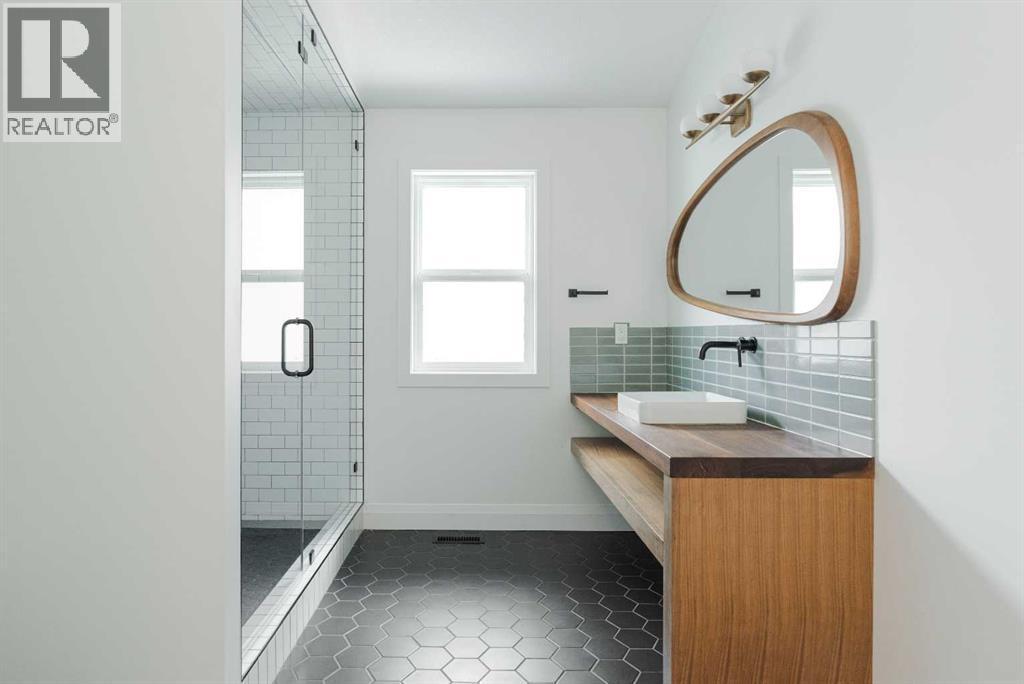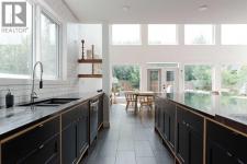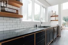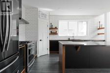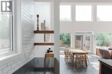 The most recognizable home on Pearson Drive is finally up for grabs, and trust me, it’s just as stunning on the inside as that bold black-and-cedar exterior suggests. And don't be fooled this home is much larger and more spacious than you may think from first glance...even the attached garage is a spacious 22 x 21.5Step through the covered breezeway (yes, a breezeway) into a thoughtful entry with custom storage that actually makes you want to stay organized. From there, things only get better: a dreamy black and walnut kitchen with a soapstone island so big it might need its own postal code, subway tile for days, and a tucked-away pantry that hides your microwave and your secrets.The vaulted living room is pure drama, in a good way. Floor to ceiling windows, a cozy wood stove, and motorized blinds that make it feel a little like a James Bond hideout. Upstairs, the walnut hardwood continues (because of course it does), and the primary suite? A spa-like escape with a clawfoot tub and a custom closet that actually fits your wardrobe.Outside, the professionally landscaped yard is its own little paradise...herringbone brick, twinkly built-in lighting, privacy fencing, and a gas BBQ ready for your summer parties. The garage is tricked out too (hello shop goals), but hey, you could still park in it. If you must.This one of a kind home is the perfect blend of modern design, warmth, and serious craftsmanship. It’s not just impressive; it’s unforgettable. Come see why. ( Key highlights: 4X10 Soapstone Kitchen Island with 2x4 Walnut Extension. Custom Kitchen by Aya Kitchens. Solid Oak Vanities. Fireclay backsplash in the bathrooms. Home has gates on both sides and the garage is heated with 240 plug and is a full 22 X 21.5 Lots of room to park but also have toys and a work bench, upper storage and roof racks are also being left behind!) (id:6769)