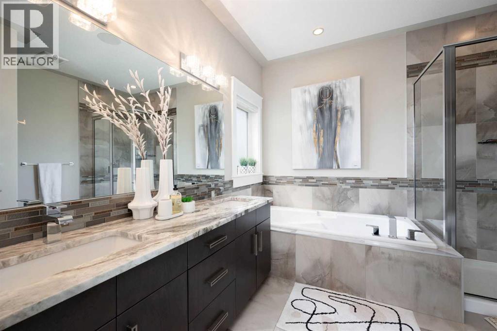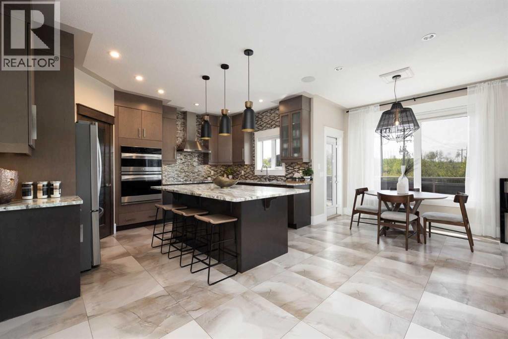 THE ULTIMATE DREAM HOME AWAITS YOU - Imagine pulling into your driveway - the sunset is casting a golden glow on this former Oil Barons Dream Home — this home is STUNNING! The Design is curated by the Melissa Hartigan Design Team, ready for you to simply pack your bags and move right in. Tucked against a lush greenbelt and boasting 4,293 square feet of exquisitely appointed living space, this residence is the epitome of luxury, elegance and seamless functionality at every turn. Step through the grand front doors into a soaring foyer, where rich hardwood floors and custom ceiling details set the tone for sophisticated gatherings. To your left lies a formal dining room, its dramatic trim and designer modern lighting inviting your closest friends to unforgettable dinner parties. Ahead, the chef’s dream kitchen awaits: a sprawling granite-topped island, floor-to-ceiling cabinetry, stainless steel appliances and a corner pantry, all bathed in natural light from expansive windows. The adjoining breakfast nook overlooks the serene backyard —- a perfect stage for morning coffees or afternoon homework sessions. The main level unfolds effortlessly. French doors reveal a dedicated home office, finished in built-in millwork and warmed by pot lighting — ideal for remote work or creative pursuits. A full bathroom, thoughtfully placed off the hallway, serves both home and guests, while a stylish laundry room boasts custom cabinetry, a utility sink and elegant tile floors. Glide up the sleek glass-railed staircase to find four spacious upstairs bedrooms. Your Primary bedroom suite is nothing short of an oasis: panoramic greenbelt views from your private balcony, a spa-inspired ensuite with dual vanities, a tile-surround soaking tub, a walk-in shower and an organizer’s dream walk-in closet. A second 5-piece bathroom and a stunning bonus room — a stone-accent gas fireplace and oversized windows — complete this level, offering flexibility for movie nights, yoga practice, or c hildren’s play. The fully legal basement suite redefines mortgage help. With its own chef-worthy kitchen, open family room, two large bedrooms and a chic bathroom, this space promises rental income or multi-generational living without compromise. Every detail has been considered: a heated double-car garage, central air, built-in speaker system, nine-foot ceilings, pot lights, night lighting in staircase and designer features that elevate each room. Function blends with opulence here, delivering a home that feels effortless yet extraordinary. This is more than a house — it’s your dream come to life. Call today for your private tour and step into a world where luxury meets livability, and every corner tells a story of impeccable taste and timeless design. Pack your bags—your new life begins now. (id:6769)