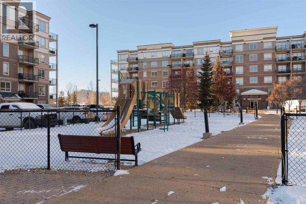 Welcome to The Peaks—where comfort meets convenience.This top-floor one-bedroom residence showcases serene views of the interior courtyard and playground, offering a private and peaceful backdrop. The thoughtfully designed open-concept layout features an eat-up breakfast bar with room for a full dinette, seamlessly flowing into a spacious living room with direct access to the balcony.The primary bedroom includes a walk-through closet leading to a well-appointed full bathroom, while in-suite laundry adds everyday ease. The balcony is equipped with both a natural gas BBQ hookup and an AC hookup, enhancing your outdoor and seasonal comfort.This home comes complete with one underground titled parking stall and a tandem storage unit (#148)—ideal for keeping life organized.Condo fees provide exceptional value, covering:Heat • Water • Garbage removal • Underground car wash station • Professional management • Exterior maintenance • Building insurance.Perfectly positioned near grocery stores, dining, fitness centres, and essential amenities, this residence offers an elevated lifestyle in a highly desirable location. (id:6769)