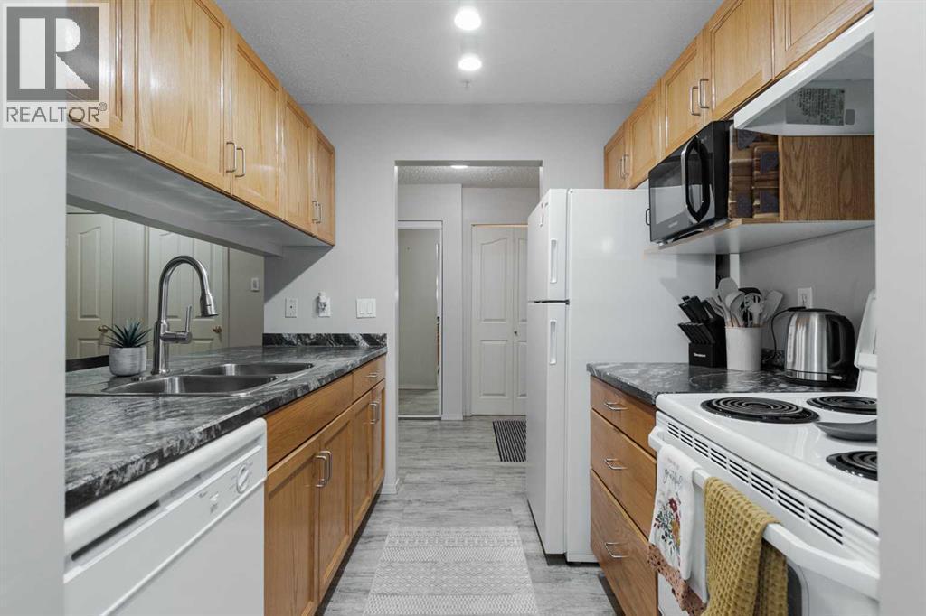 Welcome to 337-200 Richard Street; Immaculately cared for and exceptionally well maintained, this third-floor one-bedroom condo is a true turnkey opportunity. The home is in pristine condition and can be sold fully furnished with high-quality, nearly new furnishings, making it an ideal setup for investors, commuters, or first-time buyers seeking a hassle-free purchase in a prime location.The interior offers a practical and welcoming layout with durable vinyl flooring throughout and a bright entry that leads into a well-appointed galley kitchen featuring generous cabinetry and ample counter space. An open pass-through connects the kitchen to the living area, making the space feel airy and functional. The living room is filled with natural light and showcases a cozy corner gas fireplace along with patio doors that open to a private balcony.The bedroom is comfortably sized with excellent closet space, complemented by a four-piece bathroom and convenient in-suite laundry. Additional highlights include ample storage and a titled, heated underground parking stall - a major bonus during winter months. The building has also seen recent upgrades, with all windows and the balcony door already replaced, enhancing energy efficiency, comfort, and long-term value.Location truly sets this property apart. Situated in one of Fort McMurray’s most desirable condo communities, residents enjoy immediate access to major amenities, public transit, parks, and scenic walking trails along the Snye River. MacDonald Island Park - Canada’s largest community recreation and leisure centre - is just steps away, offering year-round fitness, recreation, events, and entertainment. The area is known for its walkability, strong sense of community, and easy day-to-day living.Pride of ownership is evident throughout, offering a move-in-ready lifestyle in a vibrant and convenient setting. Schedule your private showing today! (id:6769)