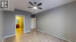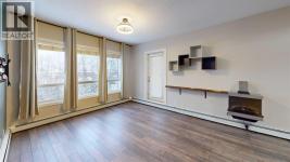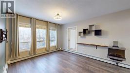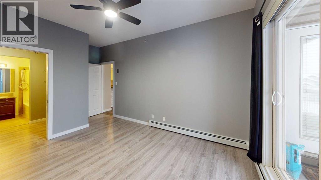 **Top-Floor Corner Unit Backing Onto Greenbelt – 2 Bedrooms + Den!** Discover this rare opportunity to own a spacious **1,100+ sq. ft. condo** featuring 2 bedrooms plus a versatile den. Perfectly positioned on the top floor corner, this home offers privacy, tranquility, and treed views from every window. **Bright & Functional Layout** – Bedrooms are thoughtfully separated by the main living area, with a den ideal for a home office. **Stylish Galley Kitchen** – Updated cabinetry, eat-up bar, and open sightlines to the dining and living room. **South-Facing Balcony** – Accessible from the primary suite, this sunlit retreat is surrounded by trees and perfect for relaxing. **Primary Bedroom** – Walk-through closet leads to a 4-piece ensuite. **Cozy Comforts** – Laminate flooring, fireplace, and in-suite laundry. Additional highlights include a **titled underground heated parking stall**, with extra surface stalls available for rent, and condo fees that conveniently cover heat and water. **Prime Location** – Nestled in one of the quietest buildings in town, backing onto a treed park, near a pond, walking trails, and just a short stroll to Starbucks and Save-On-Foods. **Available immediately – move in and enjoy the perfect blend of space, sunlight, and serenity!** (id:6769)