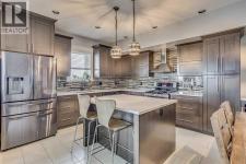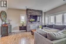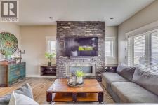 ATTACHED DOUBLE GARAGE WITH ROOM FOR AN ADDITIONAL FOUR PARKING SPOTS ON DRIVEWAY! CORNER LOT! Welcome to THE LINCOLN, an exceptional luxury townhome offering one of the largest yards and driveways in the complex, backing directly onto scenic walking trails for enhanced privacy and outdoor enjoyment. This beautifully finished home features three bedrooms on the upper level, including a spacious primary suite with a large walk-in closet and a spa-inspired ensuite complete with a jetted tub, stand-up shower, dual quartz vanities, and a built-in cabinet between the sinks. One spare bedroom includes a walk-in closet, while the other offers custom built-ins. Hardwood flooring flows throughout the home, with carpet only in the two front spare bedrooms, and white tile finishes the kitchen and bathrooms. The main floor welcomes you with an oversized foyer leading into a large living room highlighted by a stone-surround gas fireplace and access to the back deck with a gas BBQ hookup overlooking the fully landscaped and fenced yard. The living room opens to the must-see kitchen featuring quartz countertops, stainless steel appliances, a gas stove, hood fan, wine fridge, and newer fridge and dishwasher. The main floor also includes a convenient two-piece bathroom. Additional features include an attached heated garage, central air conditioning, hot water on demand (replaced approximately two years ago), a full second-floor laundry room with recently replaced washer and dryer, and an undeveloped walkout basement with in-floor heating already in place. Parking is effortless with an oversized extended driveway accommodating up to four vehicles, and condo fees include exterior insurance, landscaping (including the backyard), and garbage removal. Call today to book your personal showing. (id:6769)