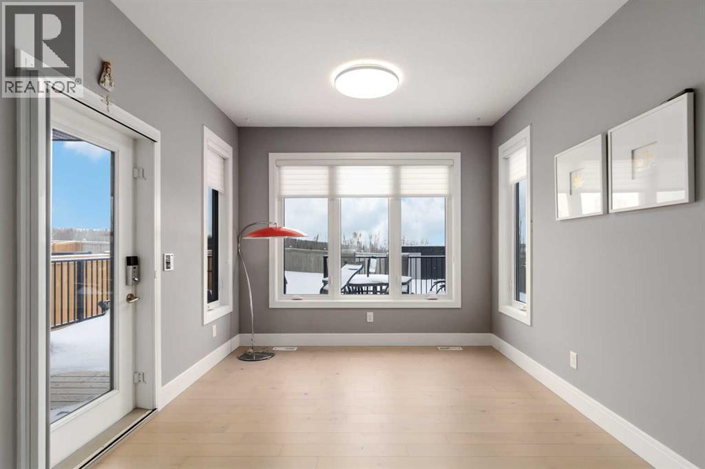 Welcome to your castle — 145 Cobblestone Bay.This exceptional residence showcases fine craftsmanship and attention to detail inside and out, complemented by exquisite, professionally designed landscaping befitting a home of this caliber. Once envisioned as an Oil Barons dream home, the property features premium appliances, upscale fixtures, and timeless finishes throughout.The remarkable kitchen is designed for both serious chefs and effortless entertaining, offering ample workspace, a large sit-up island, and a dramatic granite countertop with a striking waterfall edge. This versatile space seamlessly accommodates meal preparation and gatherings alike.The elegant dining room provides a refined setting for family dinners and hosting guests, featuring large windows and direct access to the rear deck - creating a bright and inviting atmosphere with generous room to entertain.The expansive living room may well be the heart of the home, complete with surround sound wiring, a cozy gas fireplace, and large rear-facing windows that overlook the deck and backyard. A private office or den, thoughtfully separated from the main living area, offers serene views of the river valley and front grounds - ideal for work or quiet retreat.Also on the main floor is a highly functional walk-through pantry and butler’s kitchen that connects directly to the oversized 23’ x 29’ heated garage, adding both convenience and storage.Upstairs, a stunning bonus room with soaring vaulted ceilings and front-facing windows creates a truly special space for relaxation or recreation. The second floor also features three bedrooms, including the impressive primary suite with breathtaking views of the Athabasca River Valley. The five-piece ensuite delivers a spa-like experience with a luxurious soaker tub, double granite-topped vanity, and an elegant stand-up shower.Two additional generously sized bedrooms: each with unique features and views - along with a full bathroom and well-appointed upper-l evel laundry room complete this floor, all connected by a graceful winding staircase overlooking the main entry.The fully finished basement continues to impress. A spacious family room wired for sound sets the stage for the ultimate home theatre, while the stylish sit-up bar with fridge and sink is perfect for entertaining. The lower level also includes a fourth bedroom with a large closet, a full bathroom, and intelligently designed storage space.Additional Upgrades & Smart FeaturesBeyond the obvious aesthetics, most of the windows have been upgraded to triple pane glazing with Low E & Argon Gas This home has been extensively upgraded with a 20-panel photovoltaic (PV) solar system and a 200-amp exterior electrical panel, with capacity for outdoor features such as a hot tub or electric fireplace. Home also has a 5 zone sprinkler system. And there's more! This is a rare opportunity to own a truly distinguished home in and exceptional setting! (id:6769)