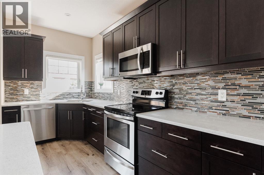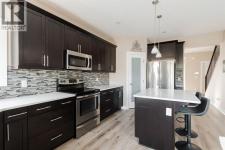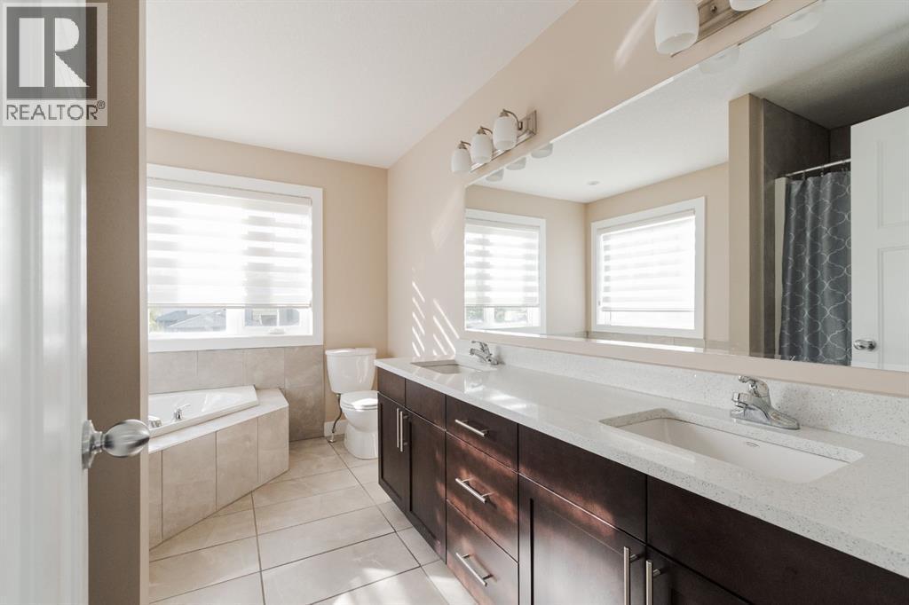 Welcome to 181 Diamondstone Ridge: A beautifully maintained Stonecreek home offering an ideal blend of thoughtful upgrades, functional space, and long-term flexibility for families. Pride of ownership is evident throughout, with a layout designed for everyday living while still feeling polished and intentional. The bright main floor features newer vinyl plank flooring and warm wooden feature walls that add character and depth. A dedicated main floor den provides the perfect space for a home office, playroom, or quiet retreat, while the open living areas create a comfortable flow for both daily living and entertaining. The living room centres around a cozy gas fireplace with a stone surround and connects seamlessly to the kitchen and dining area. The kitchen is generously sized and thoughtfully laid out, with espresso-coloured cabinetry, stainless steel appliances, quartz countertops, and a walk-in pantry. A convenient two-piece bathroom completes this level. Upstairs, you will find four generously sized bedrooms, a layout that is increasingly hard to find. The primary bedroom offers a spacious retreat with a walk-in closet and a five-piece ensuite featuring double sinks, a soaker tub, and a standalone shower. Upper-floor laundry adds everyday convenience, and newer vinyl plank flooring extends throughout the upper level for a cohesive look. The fully developed basement expands the living space even further and is designed with versatility in mind. A full bar with a water hookup makes it ideal for entertaining or movie nights. With a separate entrance, plumbing in place for a secondary laundry, and a layout that allows for the addition of a fifth bedroom, the basement offers excellent potential for extended family living or a future suite. Outside, the home continues to impress with a low-maintenance yard and a location close to schools, walking trails, parks, and amenities. The backyard features a large two-tier deck perfect for seating, dining, and summer barbecues , along with a fully fenced yard complete with a shed, offering plenty of space for kids, pets, and outdoor enjoyment. Every detail reflects meticulous upkeep and thoughtful planning, making this a truly move-in-ready property. Schedule your private viewing today. (id:6769)