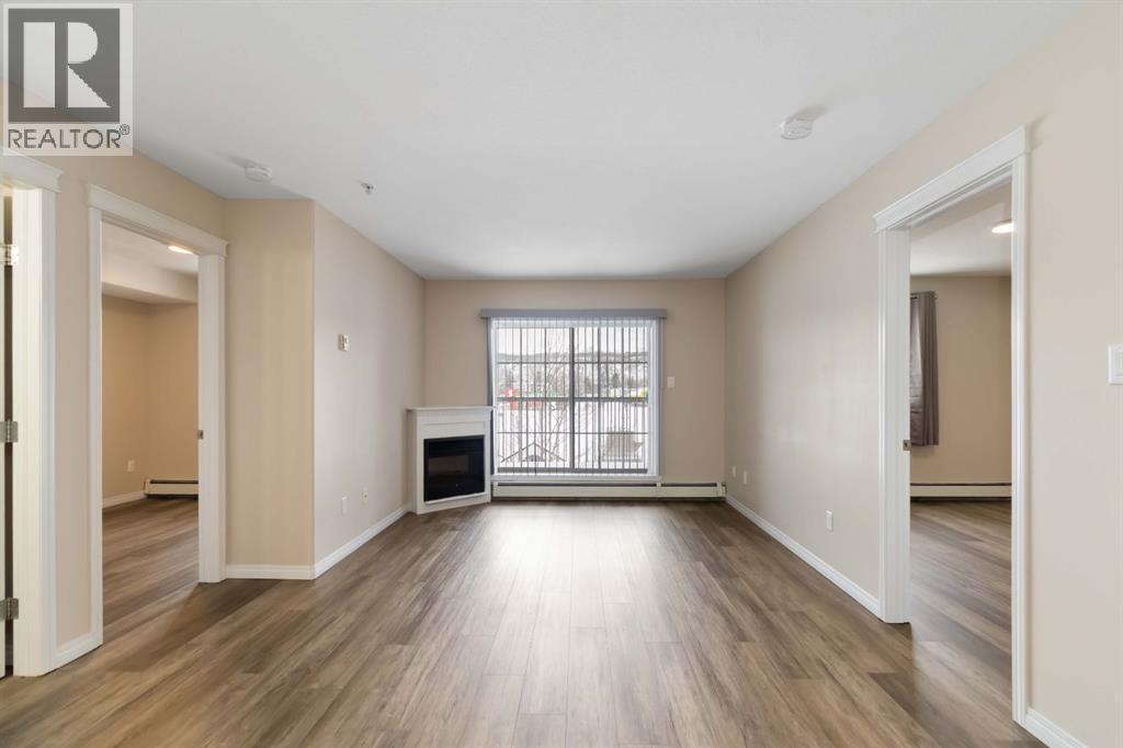 Welcome to this beautifully maintained 2 bedroom, 2 bathroom condo in Rundlestone Estates, a well managed and impeccably clean building centrally located downtown, just steps from shopping, restaurants, schools, walking trails, and more. This open concept unit is located on the same floor as the building’s gym, offering both convenience and accessibility. Inside, you’ll find fresh neutral paint, no carpet, and brand new appliances (Kitchen & Washer/Dryer replaced in 2025), along with a new faucets and thoughtful touches throughout. The kitchen offers ample cabinetry, new appliances, new countertops and backsplash, while the dining area comfortably fits the whole family. The spacious living room features a cozy corner fireplace and access to a private balcony. The primary bedroom includes two closets and a full ensuite, while the second bedroom is privately situated on the opposite side of the unit, adjacent to the second full bathroom perfect for guests or a home office. This unit also comes with one underground parking stall (#310) located just steps from the elevator, plus access to 40+ visitor parking stalls on both the north and south sides of the building. Condo fees include heat and water. This is a rare opportunity to own a move in ready condo that truly has it all. Book your showing today, this one won’t last. (id:6769)