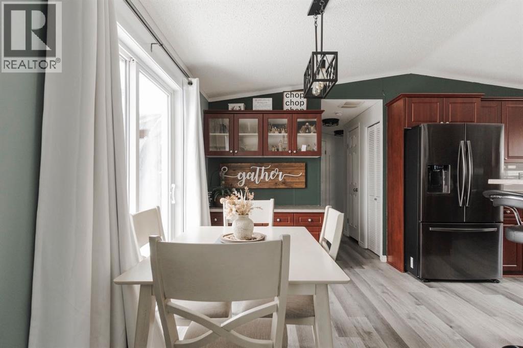 Open House: Saturday February 28th 11:00am-12:30pm | Welcome to 153 Lodgepole Way: a spacious 1,414 sq ft double wide manufactured home built in 2007, offering a functional open concept layout and the added bonus of no condo fees. With four bedrooms and numerous recent updates, this larger floor plan provides flexibility and comfort for families, professionals, or down-sizers seeking space without compromise.The bright and inviting main living area features new vinyl plank flooring installed in 2022 and updated lighting completed in 2023. The home was freshly painted in 2024, creating a modern and well maintained feel throughout. The kitchen showcases dark stainless steel appliances, including a newer washer and dryer, and a microwave that is only days old. A stylish tile backsplash was added one year ago, enhancing the space. The deep freeze will remain with the home.The layout includes four bedrooms, with the fourth bedroom currently used as a workout room and easily suited as a home office or flex space. New blinds were installed in the primary and front bedroom in 2022. A new sliding door was added in 2024, improving both functionality and natural light.Major updates include a hot water tank replaced in 2021, a new chimney completed in 2024, and repairs to the belly bag within the past four years along with the added bonus of Central A/C. Outside, the property offers a fully fenced yard with the exception of the front, crushed rock under the carport, and grass in the remaining yard space. The wired shed includes 240 volt power and attic storage, making it ideal for projects or additional storage. The carport and small tent at the back will remain, as will the gazebo and exterior permanent lighting.153 Lodgepole Way presents a move in ready opportunity with thoughtful upgrades and practical features throughout. Schedule your private showing today to experience everything this well cared for home has to offer. (id:6769)