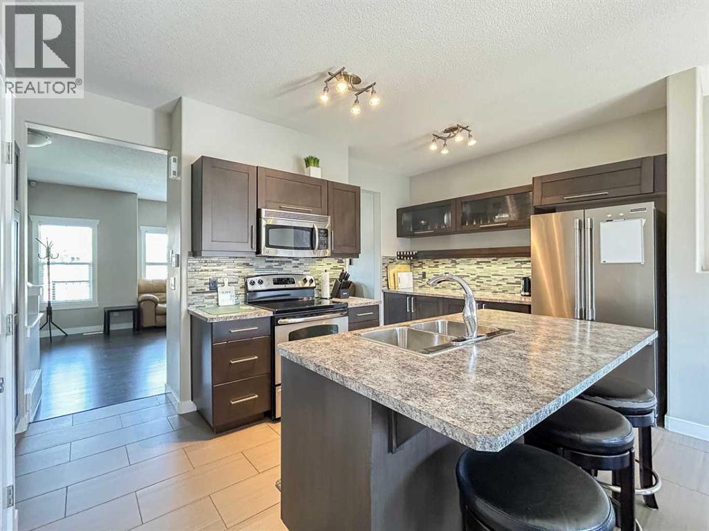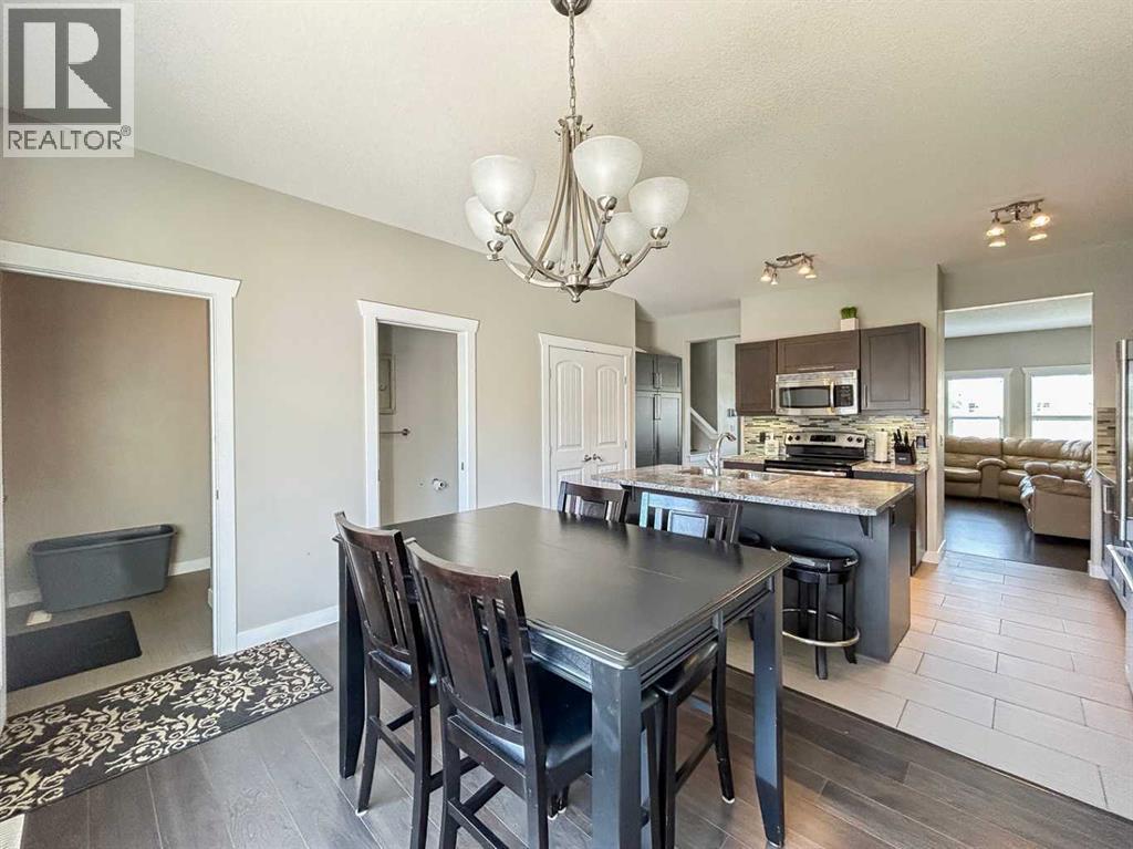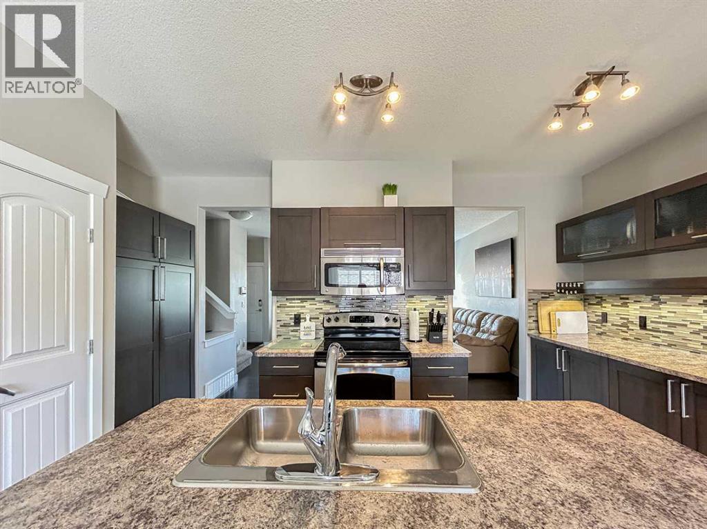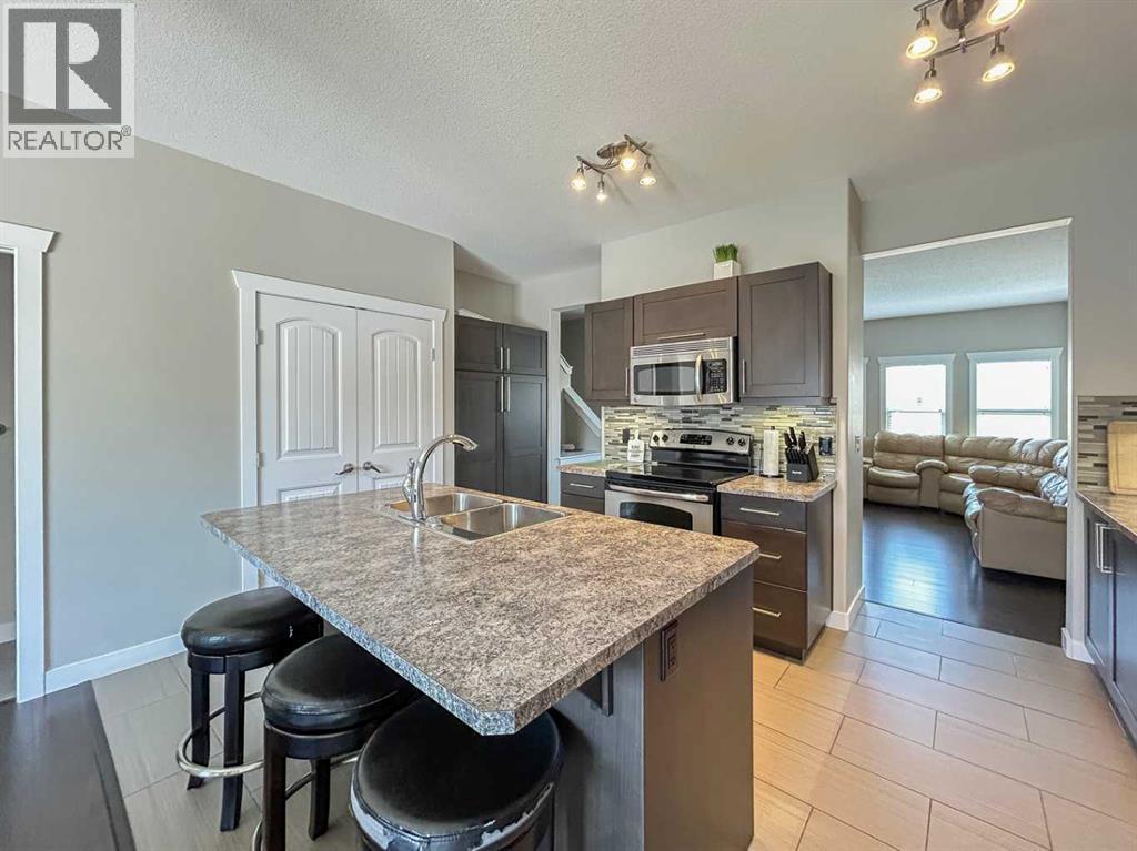 What a great location for this fully developed and turnkey home. Just bring your personal belonging and move right in! As you enter the home you are greeted by an open concept main floor with a large living room with gleaming hardwood floors and a Cozy gas fireplace there are lots of large windows to let in all the natural light. The eat in kitchen has S/S appliances, Island with breakfast bar and seating for 3. There is no shortage of storage in this home as it has loads of cupboards and counter tops, large pantry and large broom closet. This eat in kitchen has space for a full kitchen table. it’s the perfect place to entertain family and friends for Sunday dinner. There is a 2pc washroom on this level for your convenience as well. Up stairs we go to the second floor where you will find 3 bedrooms, and the master bedroom has a 5 pc ensuite with his and hers sinks. large walk-in closet and plenty of room for everything else you would need. The basement with its own separate entrance is fully developed to include a nice open concept floor plan, the living room has an electric fire place the perfect place to relax after a long day at work. The large bedroom has a over sized walk-in closet with a 3-pc bathroom. This home has recently been professionally cleaned and awaits new owners. Book your personal showing today! Bonus And for those hot summer night ahead there is Central A/C and Hot water on demand for those who love a long shower. Condo fees include Water & Electricity.This property is close to all the amenities you will need and the eagle ridge commons. Lots of great local eateries and night life close by. And 2 schools directly across the street for the little ones. Parks trails and ponds and biking trails. There is a double detached heated garage and 2 more parking stalls, private back yard with BBQ and patio and side gate with easy access to the side walkway. (id:6769)