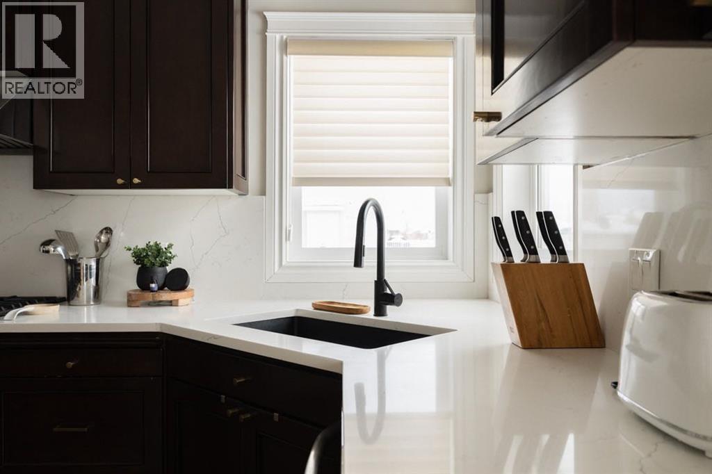 Open House Saturday March 14, 1pm-3pm | Welcome to 129 Diamondstone Ridge, a bright and beautifully maintained two storey home offering over 2,334 sq ft of living space and a calm, welcoming atmosphere the moment you step inside. With modern neutral updates that feel organic throughout and large windows filling the home with natural light, this property offers a peaceful retreat in the beautiful neighbourhood of Stonecreek Landing.The main level immediately feels open and inviting with views up to the second floor, a gorgeous chandelier hanging overhead, and a bright, spacious entry that sets the tone for the rest of the home. Updated luxury vinyl plank flooring installed in 2023 runs throughout the main level, complemented by fresh paint that creates a clean, timeless aesthetic. The living room is warm and comfortable, centred around a gas fireplace and surrounded by windows that bring the outdoors in.The kitchen has been thoughtfully updated and designed for both beauty and function. Quartz countertops installed in 2023 feature a stunning waterfall edge island and slab backsplash, creating a sleek and contemporary focal point. Stainless steel appliances, including a gas range installed when the owners moved in, complete the space. The dining area features a new chandelier that complements the entry lighting and overlooks the backyard, with direct access to the deck where a gas line is ready for your BBQ, making summer entertaining effortless.A main floor office with a closet offers flexibility and could easily serve as a sixth bedroom if desired.Upstairs, the layout is ideal for families with a rare four bedroom configuration. The primary bedroom is positioned privately at the top of the stairs and features a spacious ensuite and walk in closet. The three additional bedrooms are tucked at the end of the hallway, creating a quiet wing for children or guests. The upper level also features an open hallway overlooking the entry below, updated banister details, mod ern wall sconces along the staircase, and the convenience of an upstairs laundry room. The upstairs bathroom was refreshed with white subway tile in 2023.The walkout basement includes a bright two bedroom legal suite with its own separate entrance, offering excellent income potential or space for extended family. Large windows keep the suite light filled and welcoming in every room.Outside, the home continues to impress with a backyard deck rebuilt one year ago and freshly stained treated wood front and back steps completed in summer 2025. The fully fenced yard offers a peaceful outdoor setting.With thoughtful updates, a bright and tranquil feel throughout, and the added value of a legal suite, 129 Diamondstone Ridge offers the perfect balance of comfort, space, and functionality. Schedule your private showing today and experience the calm, welcoming atmosphere this beautiful home provides. (id:6769)