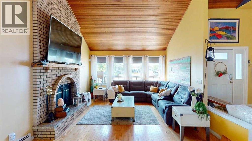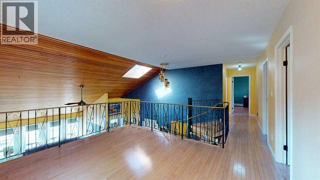 Beautiful & Unique Family Home – Designed for Comfort and Functionality!Welcome to this spacious and character-filled home that offers everything your family needs and more. With no carpet throughout—featuring hardwood, ceramic tile, and laminate flooring—this home is both stylish and low-maintenance.The heated double garage provides convenience year-round, while the inviting open-concept main floor is perfect for everyday living and entertaining. Enjoy the vaulted ceiling and wood-burning fireplace in the bright living room, which flows seamlessly into a versatile formal dining room or home office.The kitchen is a chef’s dream, with plenty of cabinetry, a central island with storage and a breakfast overhang, and views of both the dining area and the cozy family room—complete with a second wood-burning fireplace. The main floor also includes a 2-piece powder room and laundry room for added convenience.Upstairs, the primary bedroom features a private balcony with scenic views, a large closet, and a luxurious 5-piece ensuite with jetted tub and dual sinks. Two more generously sized bedrooms, a main 5-piece bathroom, and a bonus loft area ideal for a reading nook, play space, or office complete the second level.The finished basement offers even more space with a rec room, a fourth bedroom with a walk-in closet, a 3-piece bathroom, a sauna, and a huge storage room that could easily be converted into additional living space.Step outside to an enormous fenced and landscaped yard that’s ready for family fun. There’s a large deck, oversized shed, and plenty of room for a garden, trampoline, pool, and more—truly a backyard with endless possibilities!This unique and well-loved home is a rare find—offering both space and flexibility for families of all sizes. (id:6769)
