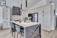 TRIPLE CAR ATTACHED DRIVE-THROUGH GARAGE! 2021 BUILT HOME! Welcome to 404 Beacon Hill Drive, a beautifully designed modified bi-level that immediately impresses with its spacious foyer offering direct access to the triple attached heated garage and a generously sized laundry room. The main level features a truly standout kitchen complete with stainless steel appliances, a beautiful custom hood fan, and an abundance of quartz countertops, highlighted by a massive island that anchors the space and provides ample prep and seating area. The kitchen flows seamlessly into the bright and inviting living room, where a sleek linear gas fireplace and modern feature wall create a warm yet contemporary focal point. The dining area easily accommodates the whole family and provides access to the back deck overlooking the fully fenced and professionally landscaped yard (see summer photos). This level is finished with two spacious secondary bedrooms and a full 4-piece bathroom. Privately situated above the garage, the primary bedroom offers a peaceful retreat with a large walk-in closet and a luxurious 5-piece ensuite featuring a soaker tub, dual sinks, and a custom shower. The fully developed basement is designed for entertaining, boasting a large rec room complete with a wet bar and wine fridge area, along with a fourth bedroom, an additional 4-piece bathroom, and plenty of storage space. The basement ceiling also has a sound bar installed to cut down on noise to the rest of the home. The triple car garage is equally impressive with epoxy flooring, forced air heating, and convenient drive-through access to a rear parking pad. Situated across from a tree-lined area and close to schools and amenities, this home also includes central A/C and ample parking, making it the complete package. Call now to book your personal showing. (id:6769)