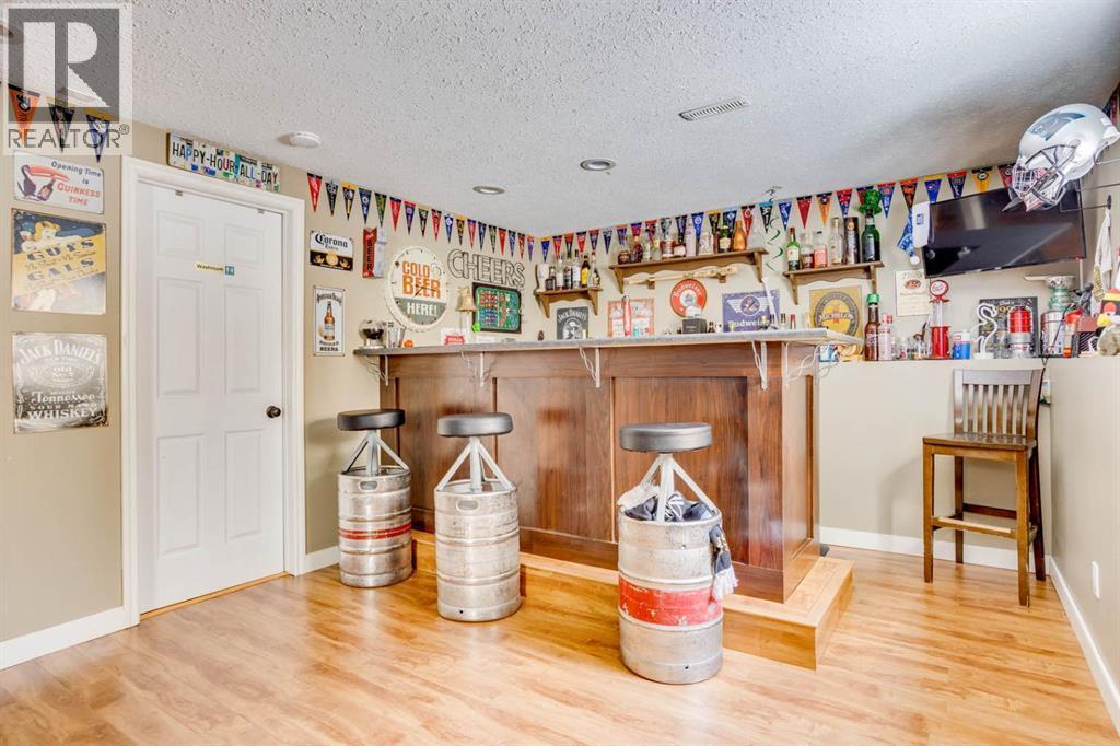 Welcome to 121 Castle Ridge Lane, a beautifully maintained bi-level home ideally located on one of the most coveted streets in the established and family-friendly neighbourhood of Thickwood. Offering 1,518 sq ft of thoughtfully designed living space, this home is perfect for first-time buyers or a growing family seeking comfort, style, and functionality.Step inside to discover a bright and inviting layout featuring large windows that fill the home with natural light. The stunning sunken living room showcases rich hardwood flooring and a cozy gas fireplace—an ideal space for relaxing or entertaining.The updated kitchen is sure to impress, featuring freshly painted cabinets, quartz countertops, stainless steel appliances, and a modern tile backsplash. A formal dining area provides the perfect setting for family meals and gatherings. The main floor also offers the convenience of laundry, along with three generously sized bedrooms and two full bathrooms.The spacious primary suite features dual closets and a well-appointed ensuite with a jetted tub and separate stand-up shower—your own private retreat.Downstairs, you’ll find an oversized fourth bedroom, a full 3-piece bathroom, and a massive recreation space highlighted by a custom bar with a mini fridge—perfect for entertaining or creating a family hangout zone.Step outside to enjoy a fully fenced backyard complete with a drop-down deck and relaxing hot tub—perfect for unwinding or hosting guests year-round.Additional highlights include a double attached heated garage and front driveway parking for added convenience. Shingles were replaced in 2020! This home combines space, updates, and a prime location—an excellent opportunity you won’t want to miss. (id:6769)