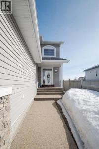 Welcome to 169 Chestnut Way, a warm and well-appointed two storey home offering a functional layout, thoughtful updates, and one of the most desirable backyards in the neighbourhood. From the moment you arrive, the exposed aggregate three car driveway, oversized attached double car garage, and covered front step create a polished first impression with storage and space for the whole family. Located in a very family friendly Timberlea neighbourhood, you will enjoy easy access to many amenities as well as access to outdoor trails and a park located directly behind the home.Step inside to a welcoming tiled entry with a walk-in coat closet that keeps everyday comings and goings organized. Neutral paint tones run throughout, creating a calm and cohesive backdrop that suits any style. The main level flows easily from the entry into the living room, where hardwood flooring and a gas fireplace make for a comfortable and inviting space. The kitchen is practical and well laid out, featuring wood cabinetry, light coloured countertops, a walk-through pantry that leads into the garage mudroom entrance, tiled flooring, an eat-up island, and stainless steel appliances. A built-in desk or coffee bar adds a versatile touch that works equally well for morning routines or a quiet workspace. A two-piece bathroom on the main level adds convenience, and main floor laundry tucked into the garage mudroom keeps the primary living spaces tidy and functional.Upstairs, carpet runs throughout the three bedrooms, providing a soft and comfortable feel underfoot. The primary bedroom is generously sized with space for your king size bed and features a five-piece ensuite complete with a two-person jetted tub, water closet, and a walk-in closet. A second full bathroom serves the additional bedrooms, rounding out a well-designed upper level with plenty of room for a growing family or professionals alike.The garage is a standout feature, finished with checkered flooring, painted red for a fun and di stinctive character, and equipped with a radiant heater to keep it comfortable through every Alberta season. A man door opens to a concrete pad and provides direct access to the backyard, adding everyday practicality.Outside, the home truly shines. A large back deck with a gazebo creates a beautiful outdoor entertaining space, while the fully fenced yard offers privacy and room to enjoy. Backing directly onto green space with a gate for direct park access, this backyard is a rare find that connects you to nature, walking paths and a playground right from your own property.169 Chestnut Way offers warmth, character, and an outdoor lifestyle that is hard to beat. Schedule your private showing today. (id:6769)