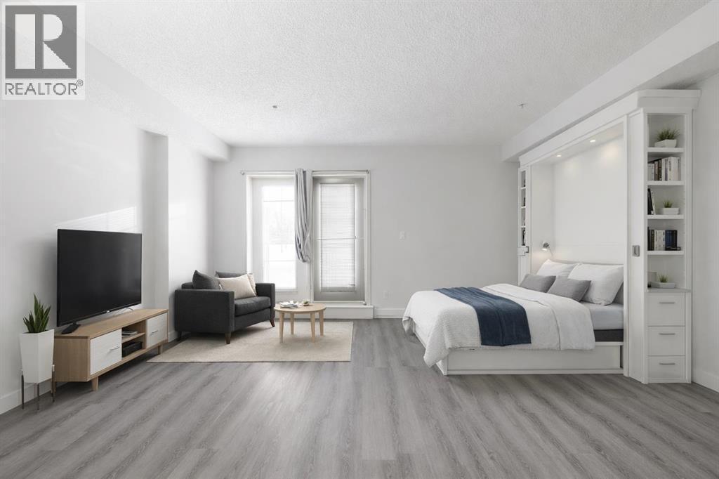Commuters- Why rent when you can own for less! Turnkey ground floor studio apartment offering exceptional value for first-time buyers, commuters, or investors alike. This well-designed unit features an open-concept layout with a functional kitchen, four-piece bathroom, in-suite laundry, and a generous in-suite storage area for added convenience. Recent improvements include paint, vinyl plank flooring, and newer fridge, washer, dryer and toilet. Enjoy easy ground-level access to your private patio, complete with a gas line for BBQs, and direct access to your titled surface parking stall just outside your door — perfect for everyday living. With air conditioning unit included and solid concrete construction throughout the building, you’ll appreciate year-round comfort and quiet living. The complex offers fantastic amenities including a fitness center, social room, games room, car wash bay, and playground. A titled secure underground storage unit and a titled above-ground titled parking stall are included. This unit is ideally located within walking distance to restaurants and amenities, the Commons at Eagle Ridge, and public transit just steps away, this home truly combines affordability, lifestyle, and convenience. Condo fees of $370.66/month include heat, water, garbage, property management, common area maintenance, reserve fund contributions, and building insurance. A move-in-ready opportunity in a prime location — don’t miss it! (id:6769)