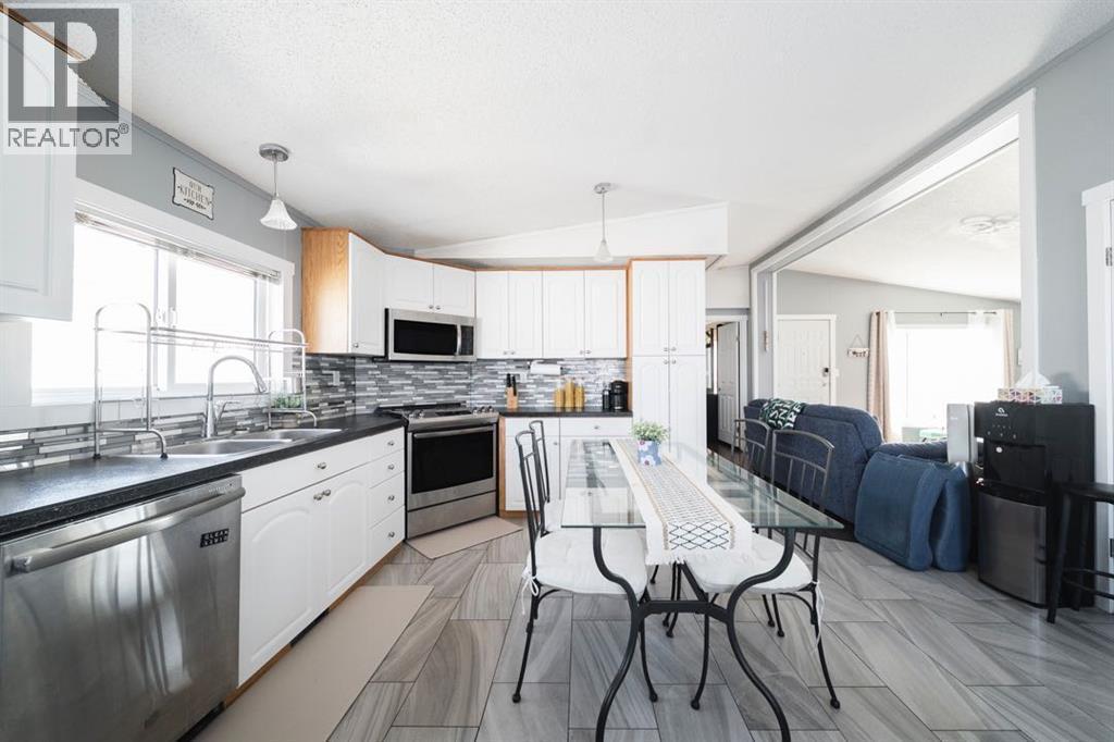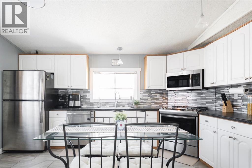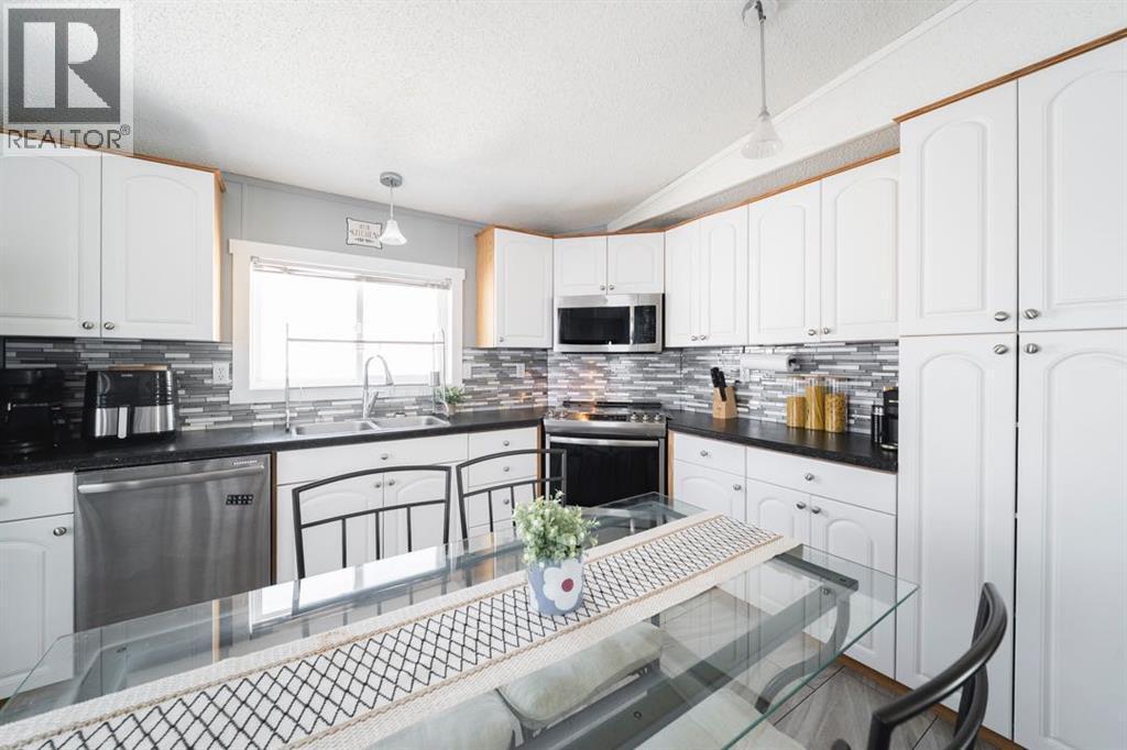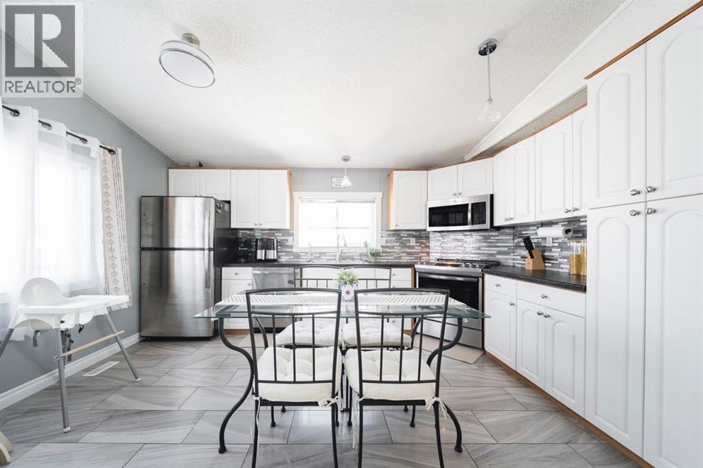 Welcome to 125 Grant Bay, a well maintained three bedroom, two bathroom home sitting on a spacious 5,961 square foot corner lot with an abundance of parking, a show-stopping detached garage, updated shingles 2024 and hot water tank in 2025 and a layout designed for comfortable everyday living. With a front driveway plus a second paved driveway in the back, and a detached 22x28 heated garage, this property is a dream for anyone who needs serious space for vehicles, hobbies, or storage.The front deck welcomes you inside where vaulted ceilings, LED lighting, and neutral grey walls create a bright and open atmosphere throughout. The open concept main living area features laminate flooring in the living room that flows into a well appointed kitchen with tile flooring, white cabinetry, stainless steel appliances, and a dining area, making the space ideal for both daily routines and casual entertaining. No carpet anywhere in the home means easy maintenance from top to bottom.The primary bedroom comfortably fits a king size bed and includes a walk-in closet and a four-piece ensuite. Two additional bedrooms are found on the other side of the home both offering flexibility for families or a home office setup. A second four-piece bathroom serves the additional bedrooms, and a dedicated laundry room rounds out the interior.Outside, the fully fenced yard enjoys afternoon sun and offers a wonderful outdoor living space complete with a back deck and an included gazebo. The corner lot provides an impressive sense of space and privacy that is hard to find.The detached 22x28 garage is truly the star of the property, heated with 220/240v plug and currently set up with a golf simulator (simulator negotiable), giving you a sense of just how much this space can accommodate. Whether you envision it as a workshop, gym, entertainment space, or simply the ultimate garage, the possibilities are nearly endless.Additional highlights include central air conditioning, updated shingles and fe ncing in 2024 and a new Hot Water Tank in 2025 offering peace of mind for years to come.125 Grant Bay delivers on space, parking, and lifestyle in a package that is tough to beat. Schedule your private showing today. (id:6769)