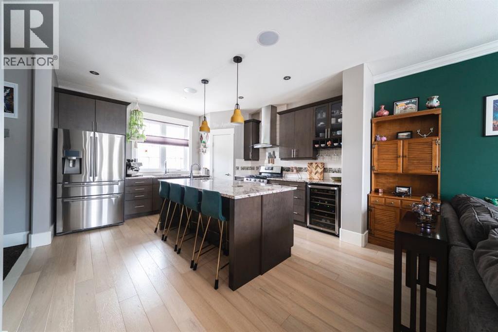 Welcome to 132 Comeau Crescent, a one of a kind three storey home lovingly owned and curated by its original owners since 2013. With a bold front door, an enviable covered front step, a hammock included to enjoy the shade of the tree, and charming homes lining the street, this one is truly unlike anything else on the market. Every detail has been chosen with intention, and the energy here is something you have to experience in person.Step inside and feel it immediately. Engineered hardwood floors, crown moulding, new lighting installed in 2025, built-in speakers, and dimmable lights throughout create a warm and curated atmosphere. The living area centres around a Napoleon gas fireplace framed by a stunning green feature wall with green rocks nestled inside, grounded and earthy, while three large windows flood the space with natural light.The kitchen earns its place as the heart of the home with granite countertops, a gas burner, wine fridge, built-in wine rack, tile backsplash, under cabinet lighting, corner pantry, slide-out garbage, and a island with a prep sink and microwave. A built-in entry bench, central vacuum, and clever under-staircase storage round out a main floor designed with real life in mind. A freshly painted two-piece bathroom with crown moulding and back entry laundry complete the level.Upstairs, the king-sized primary features blackout blinds, boho beaded lighting, and an ensuite with an oversized rain shower, heat lamp, and water closet. Two additional bedrooms and a four-piece rain shower bathroom complete the second floor.The top floor is where the fun lives. A wet bar, wine fridge, pool table, four-piece bathroom, and hardwood floors make this an entertainers dream, equally suited as a games room, lounge, or expansive primary retreat.The legal two-bedroom basement suite is self-contained, soundproofed, and heated with in-floor heat, offering a low maintenance income stream for the next owner.Outside, stamped concrete, a fire pit, and a h ot tub sold as is create a low maintenance backyard built for enjoyment. The detached heated 20x22 garage was raised eight inches and fitted with weeping tile and drainage, with shelving included and additional parking alongside. A bus stop is ninety seconds from your front door.132 Comeau Crescent is alive with character, income potential, and a vibe that is entirely its own. Come see it for yourself. (id:6769)