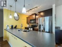 Pack your personal belongings and move right into this 4 th floor turnkey condo that has it all and a few extras. The property comes fully furnished right down to the dishes. Picture perfectly clean and tastefully decorated describes this home. As you enter the unit you will notice the spacious bright and sunny open concept kitchen and living room. The kitchen boasts breakfast bar, Stainless steel and glass backsplash in the kitchen, upgraded appliances. I love the paint and the” bon appetit “scribing on the wall in this kitchen speaks gourmet cooking. This Open concept floor plan is perfect for any lifestyle. The Living room offers a cozy space with big windows to let in all the natural light and direct access to your private balconey with gas BBQ hookup and Western exposure. This home comes with 2 good size bedrooms, and the Master bedroom has a walk through 2-sided closet with its own private 4 pc ensuite. Other great features include updated light fixtures, & ceiling fan, central a/c, Full size stackable washer & dryer more than one closet for storage. The under-ground parking for this unit is a 2 car tandem parking stall, it has its own storage locker, and use of the onsite gym. Condo fees include, building insurance, heat, water, sewer. What a great location close to bus routes, grocery store, restaurants and all other amenities. (id:6769)